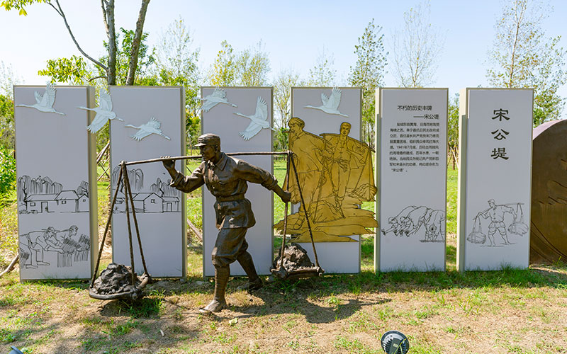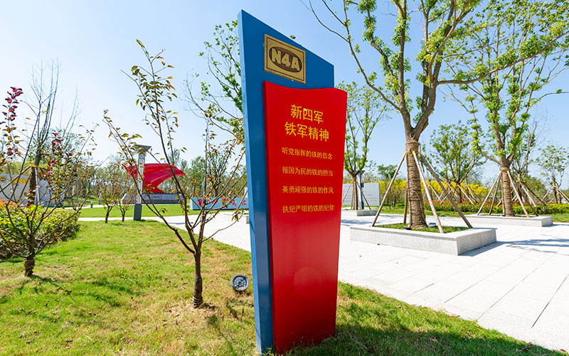 新四軍文化林,位于鹽城經(jīng)濟(jì)技術(shù)開(kāi)發(fā)區(qū),北起團(tuán)結(jié)河,南至鹽瀆路,東側(cè)毗鄰鹽城市委黨校,西至通榆河河坎,總面積315畝,總投資約1億元,已于2021年4月竣工。新四軍文化林以自然林帶為背景,鐵軍文化為核心,整合四季景觀,追憶新四軍英雄史詩(shī),通過(guò)“聽(tīng)黨指揮、報(bào)國(guó)為民、英勇頑強(qiáng)、戰(zhàn)地黃花、執(zhí)紀(jì)嚴(yán)明、經(jīng)濟(jì)建設(shè)、團(tuán)結(jié)統(tǒng)戰(zhàn)、旌旗獵獵”八大版塊,以人物故事、感人事跡串點(diǎn)成線,通過(guò)開(kāi)放、共享的休閑觀光形式向廣大市民和培訓(xùn)學(xué)員宣傳新四軍鐵軍精神和鐵軍文化,從革命歷史中感悟和汲取鐵軍精神的強(qiáng)大力量,以樹(shù)為碑銘記初心,以林為魂啟迪后人。