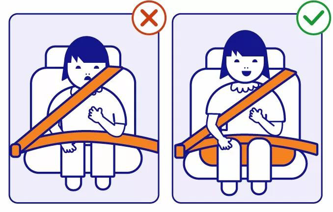 安全帶跨過兒童的肩膀,斜對(duì)角貼胸而過;腰帶應(yīng)該跨過大腿根部而不是小孩的腹部,這樣可以避免勒傷兒童的腹部;如果兒童身高不足,必須配合使用增高坐墊或者增高座椅抬高他們的身體。